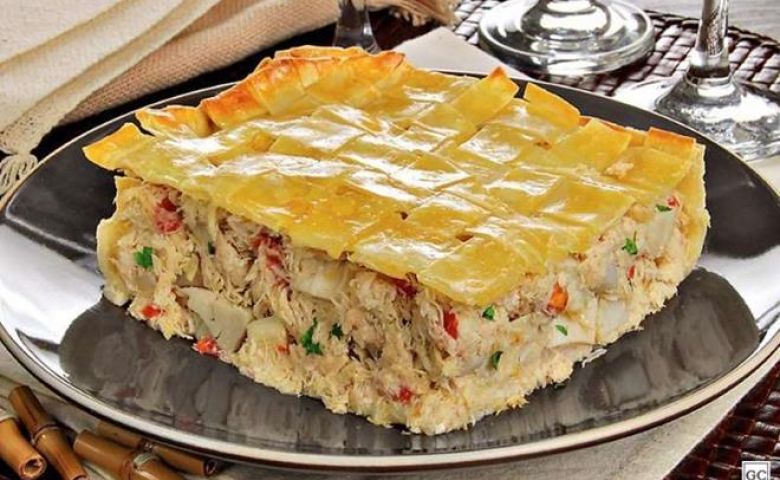 Receita: Torta de massa de pastel com creme de palmito